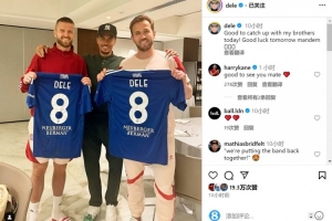 阿里造访拜仁俱乐部,与曾在热刺共事的凯恩、戴尔见面,并将自己的8号科莫球衣赠送给老队友。