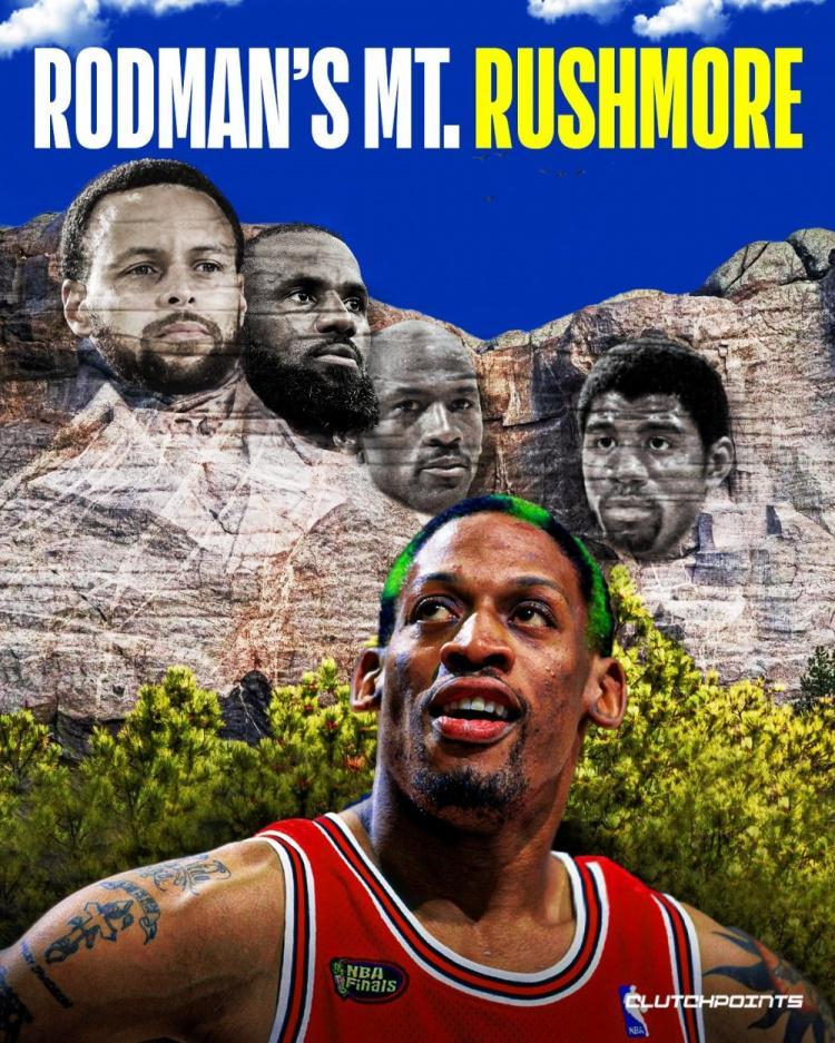 直播吧8月31日讯 美媒Clutch Points分享了NBA名宿丹尼斯-罗德曼心目中的NBA总统山人选,他们分别是:乔丹、魔术师、库里和詹姆斯。